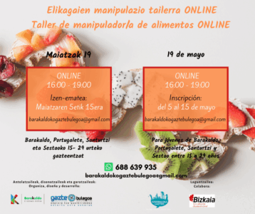 Gazte Bulegoa de Barakaldo, organiza el taller: manipulador/a de alimentos ONLINE, en castellano, dentro del programa Ezkerraldea Gaztedi. Este programa, se pone en marcha con el objetivo de impulsar la… Seguir leyendo CURSO DE MANIPULADOR/A DE ALIMENTOS ONLINE