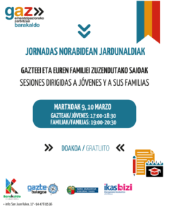 El Servicio GAZBarakaldo celebrará las jornadas de orientación Norabidean para jóvenes y familias, entre los días 9 y 12 de marzo, con el objetivo de ayudaros a afrontar los cambios,… Seguir leyendo JORNADAS NORABIDEAN 2026